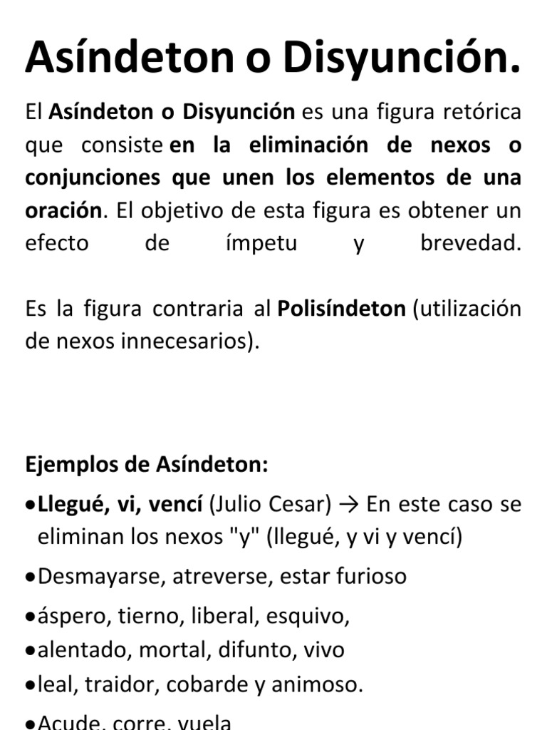Asindeton - El asindeton es una figura retorica que consiste en omitir deliberadamente los nexos o conjunciones que unen los elementos de.